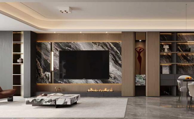 本空間為現代輕奢軟裝,以黑白灰為基底,低飽和亮色點綴,甄選巖板、金屬、玻璃等質感材質,巖板加持高級質感與實用性,家具線條利落,無多余裝飾,打造簡約奢雅、適配現代生活的舒適空間。