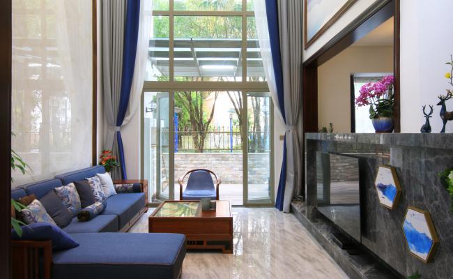 業主非常喜歡歐式風格,家具和窗簾墻紙的搭配上以米黃色調加藍色相互襯托。