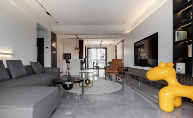 屋主夫婦2人就職于設(shè)計院,平時在家有辦公的需求。 以此為契機(jī),設(shè)計師梳理了各區(qū)域的空間設(shè)計。 整體動線以客廳為主體向四周擴(kuò)散,打通客廳與餐廳以及書房的壁壘。