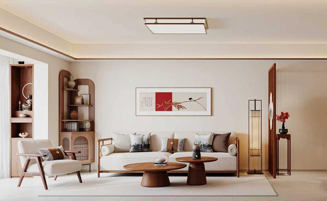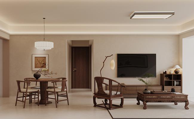 以暖白色啞光柜體、胡桃木色臺面/家具、人字拼木地板為主,搭配大理石紋理裝飾件,呈現自然溫潤的質感;線性燈光(營造柔和氛圍)、懸浮式柜體(弱化厚重感)、透明餐椅(減輕視覺負擔)等元素,強化了“輕簡”的現代感;既滿足現代家庭的“互動式生活”需求(客餐廚聯動),又通過家政區的獨立設置提升實用性,是“美學與功能平衡”的當代居住空間設計案例。