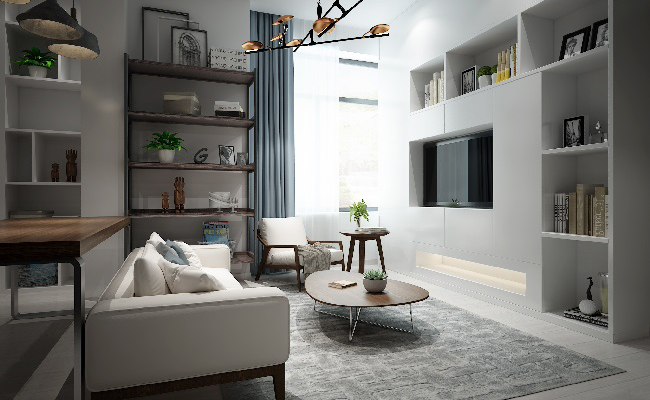 設計理念:空間中沒有多的色彩堆砌,清淺的灰和溫潤的木色是空間中的兩種主色調。客餐廳中的屏風、沙發邊幾、電視背景在色澤上一脈相承,灰色調的沉靜、素雅,反映在磚面,皮質,羊絨材質上所呈現的質感不同,前者彰顯的質樸與后者低調的時尚互揉合,將現代空間的美感重新定義,衍生出新的豐富的視覺效果。從空間區分來看,客餐廳屬開放式格局,而與書房臥室之間以溫潤的木質材料以及透明玻璃組合作為界定,賦予空間以柔和與通透之感.