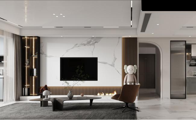 以**“簡約質(zhì)感,舒適宜居”**為核心設(shè)計理念,摒棄繁復(fù)裝飾,用簡潔線條與通透格局勾勒空間骨架。客餐廳采用LDK一體化設(shè)計,打通空間壁壘,搭配淺灰色啞光地磚與白色懸浮吊頂,延伸視覺縱深;局部以深木色柜體、金屬線條點綴,平衡冷硬質(zhì)感。