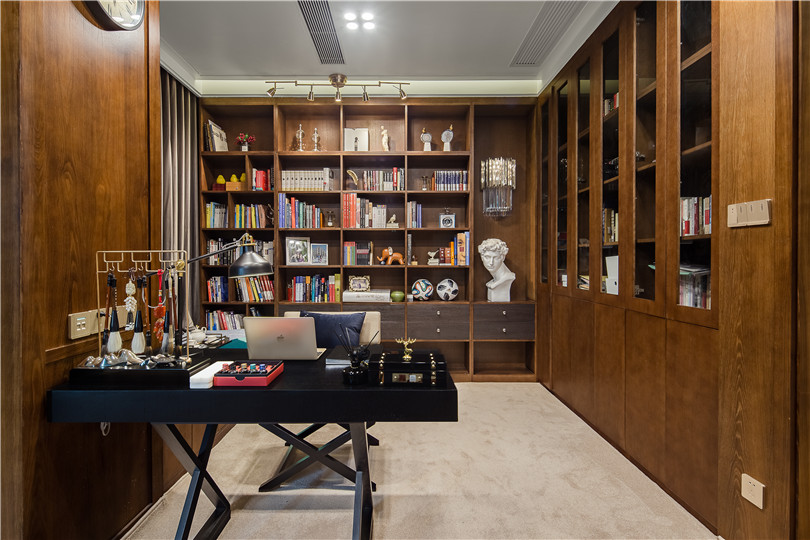書房延用橡木色,配以米色的地毯,沒有過多的裝飾,房主的藏書便是這里真正的主人。