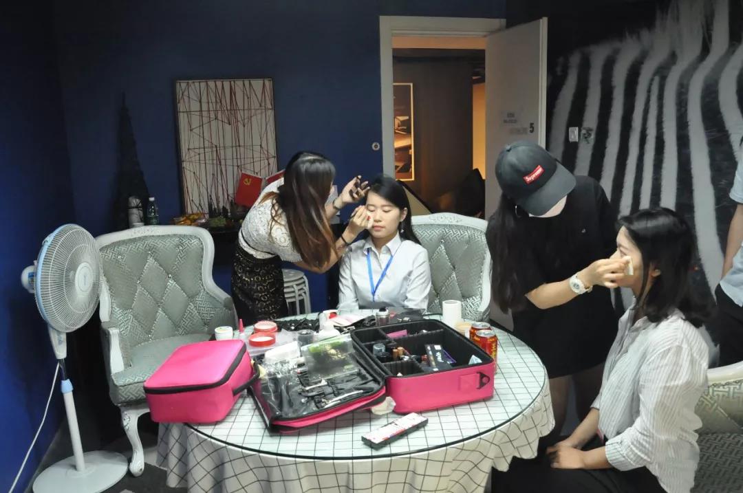 造型團(tuán)隊(duì)忙著為設(shè)計(jì)師們打造形象,無(wú)論是服裝搭配,還是發(fā)型妝容,整體效果都完美把控。