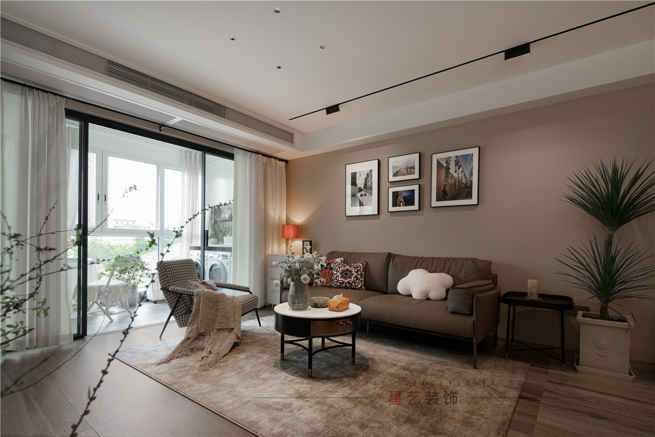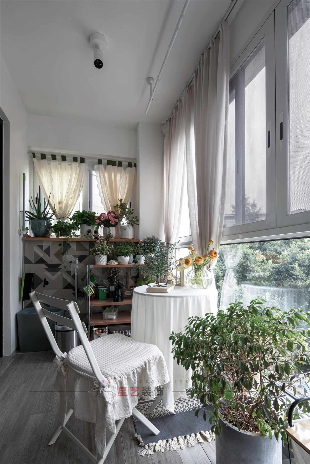 陽臺是最讓人放松的地方,各種各樣的盆栽,一眼就能望盡戶外風景,并且設計師貼心設置了一半的推拉窗,增強了采光又不占用空間,可以跟朋友一起感受午后的陽光明媚,品一杯下午茶,享受歲月靜好的高質量生活。