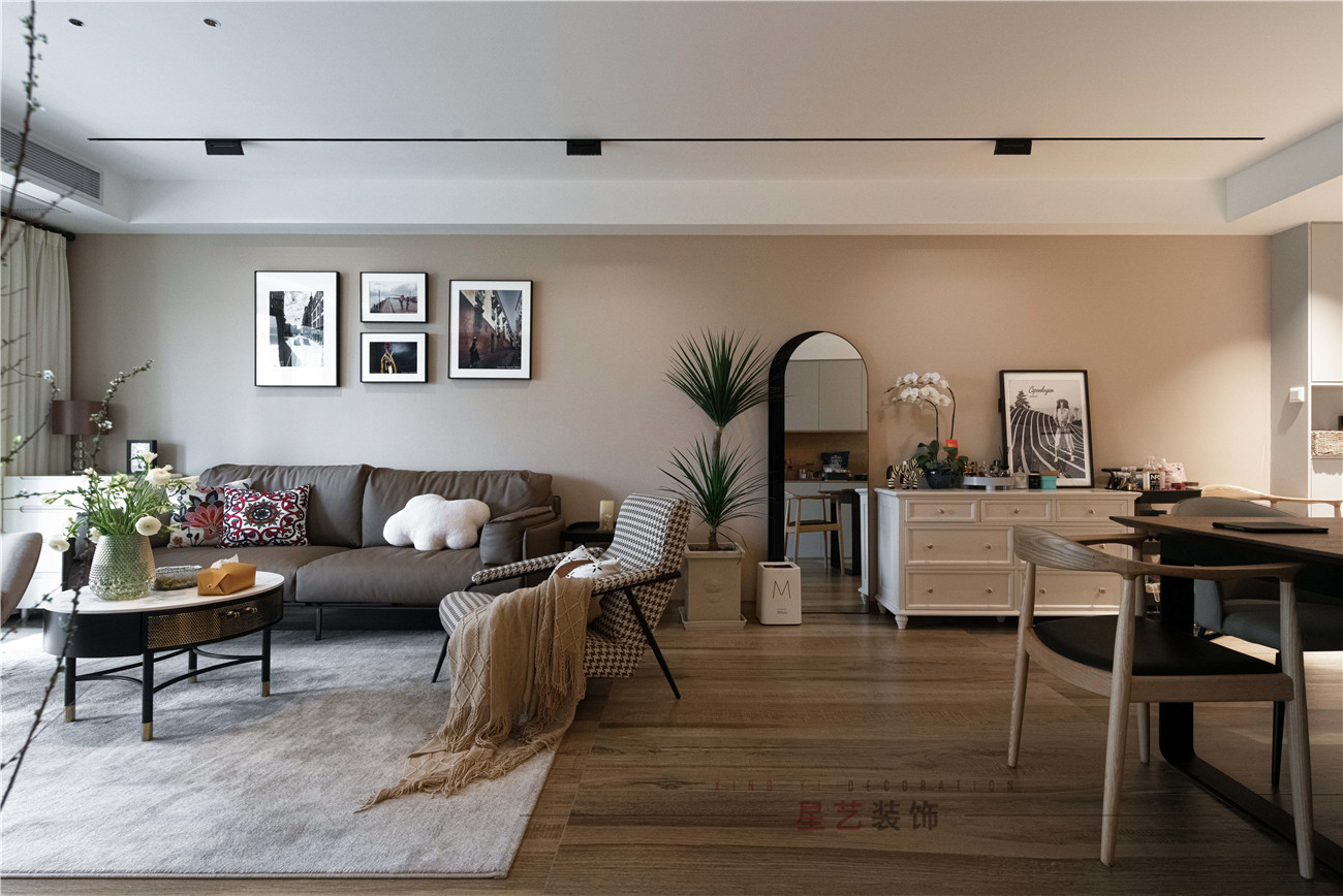 當走進客廳的時候,濃濃的復古色調構成溫馨小家,柔軟舒適的布藝沙發,黑白搭配的明顯對比產生強烈的視覺沖擊,加上綠植的點綴和的極好的光線效果,形成明艷,清新淡雅的美感。