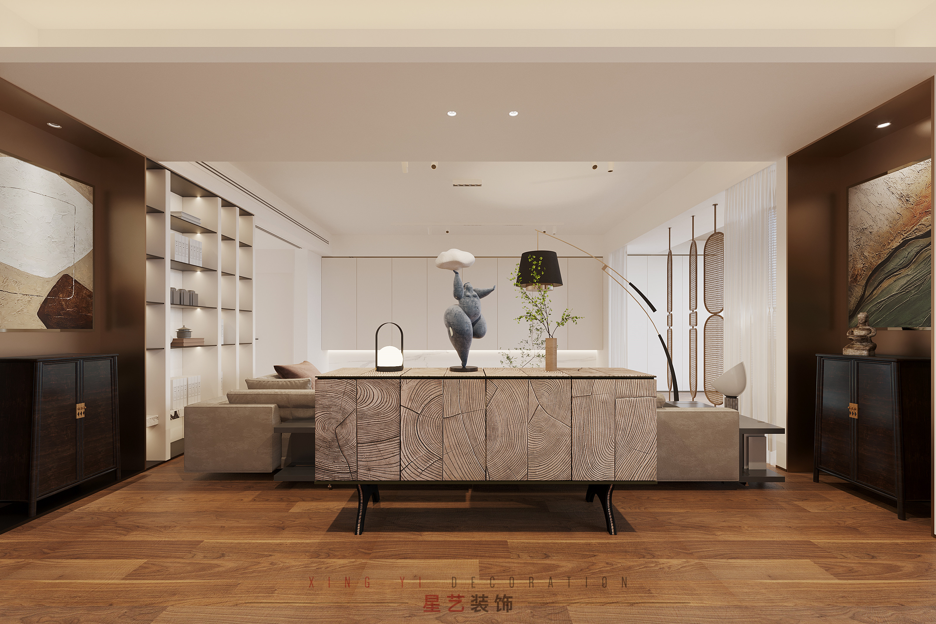 現(xiàn)代簡(jiǎn)約+藝術(shù)文化,簡(jiǎn)潔明快的設(shè)計(jì)風(fēng)格為主調(diào),加入藝術(shù)文韻,生活的精致感和個(gè)性化得以彰顯,這是本期案例的感性經(jīng)驗(yàn)。