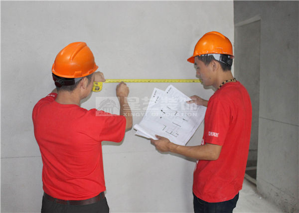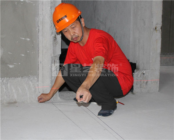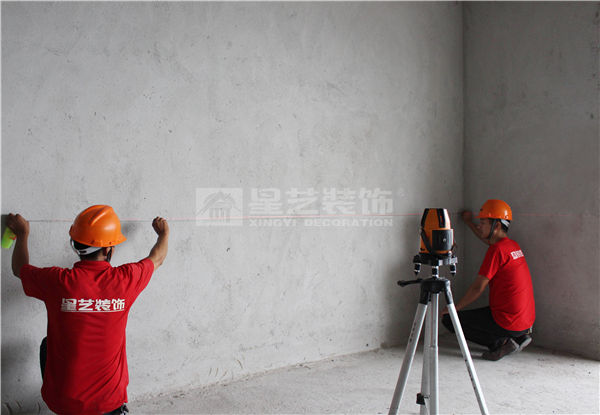 全房各區域水平線在一個水平面上。在墻面用鋼卷尺量出1000mm高的位置,用紅