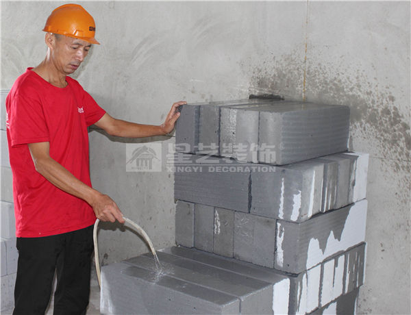 (2)砌墻用磚提前一天澆水濕潤。目的:防止砌墻時水泥砂漿水化過快,