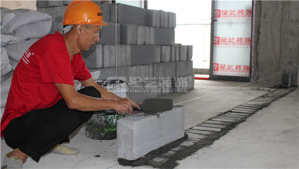 (1)放樣:按照施工圖放大樣,確定砌墻位置。