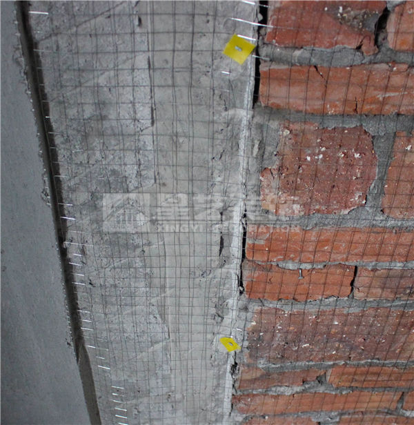 (1)掛網:新砌墻掛鋼筋網,新舊墻、梁柱交接處掛網不少于200mm搭接。