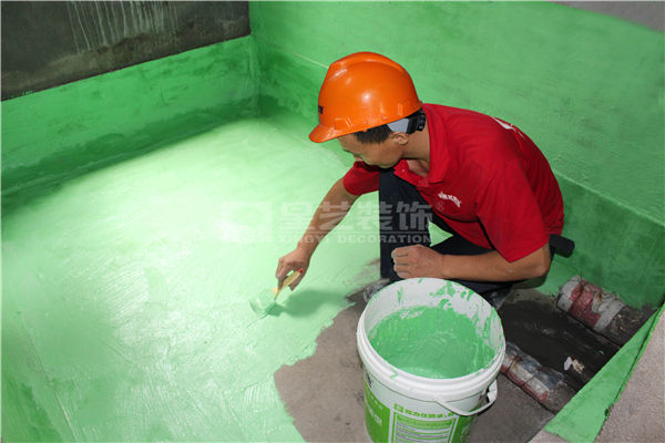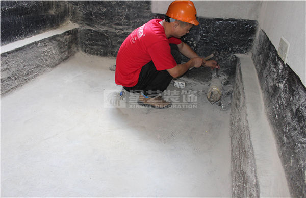 (2)刷一遍柔性防水,防水刷到墻面300mm高。待干后安裝水管。
