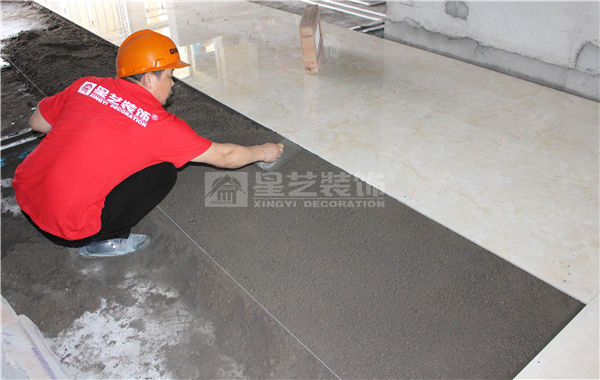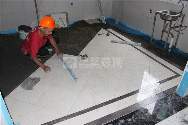 (2)鋪貼時在墻的四周打一條水平線,底部預留一塊不鋪,