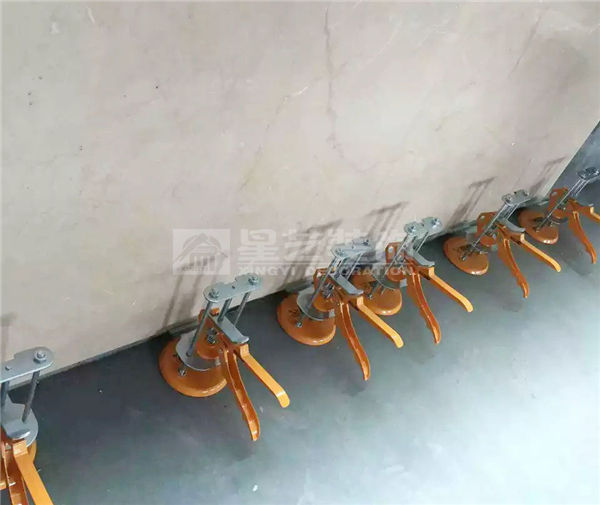 以每隔三排磚掛一條橫向水平控制線,橫向鋪貼并用水平尺測平整度