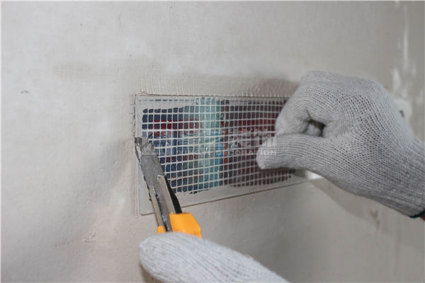 批刮好后對(duì)電底盒上的玻纖網(wǎng)進(jìn)行清理,及底盒清邊。