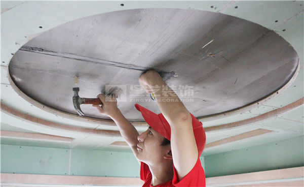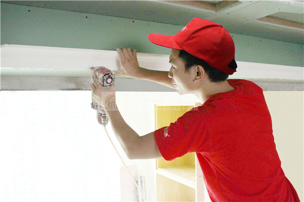 2、天花陰角修正:在原頂找平后,陰角彈線,用專(zhuān)用陰角抺子修正。